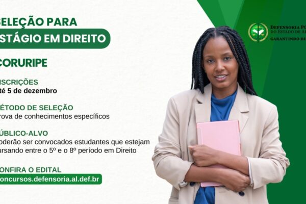 A Defensoria Pública do Estado de Alagoas (DPE/AL) está com inscrições abertas para um processo seletivo destinado a estagiários de…