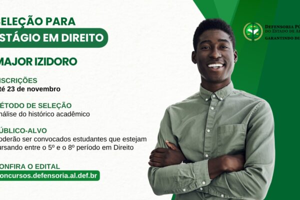 A Defensoria Pública do Estado de Alagoas (DPE/AL) abriu inscrições para um processo seletivo de estagiários de Direito na cidade…
