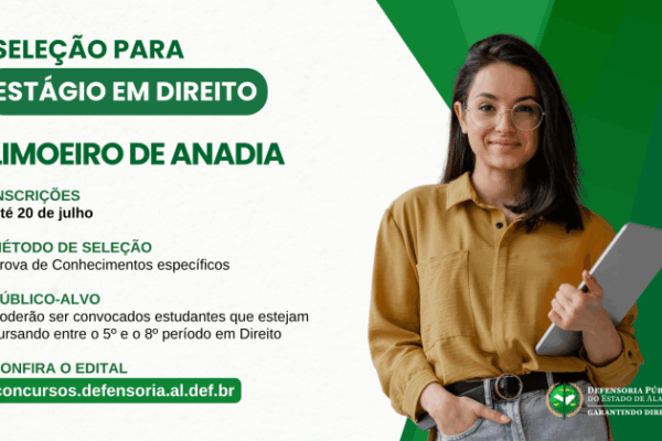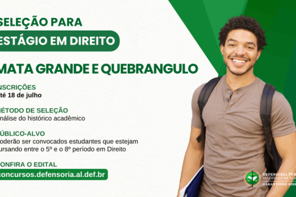 A Defensoria Pública do Estado de Alagoas (DPE/AL) está com inscrições abertas para duas seleções de estágio em Direito, oferecendo…