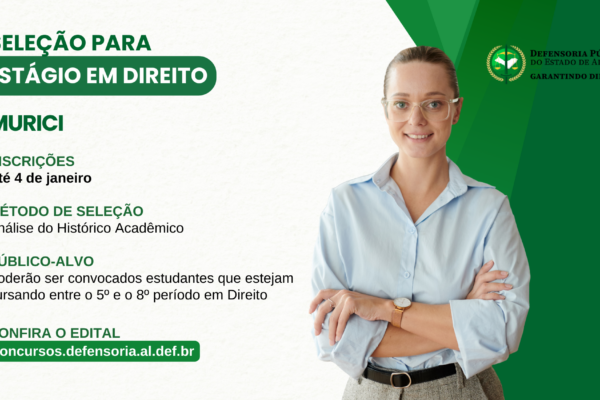 A Defensoria Pública do Estado de Alagoas (DPE/AL) anunciou a abertura das inscrições para um estágio em Direito no município…