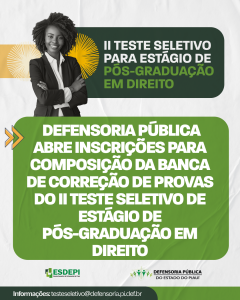 A Defensoria Pública do Estado do Piauí, por meio da Escola Superior da Defensoria Pública (Esdepi), anuncia a abertura das…