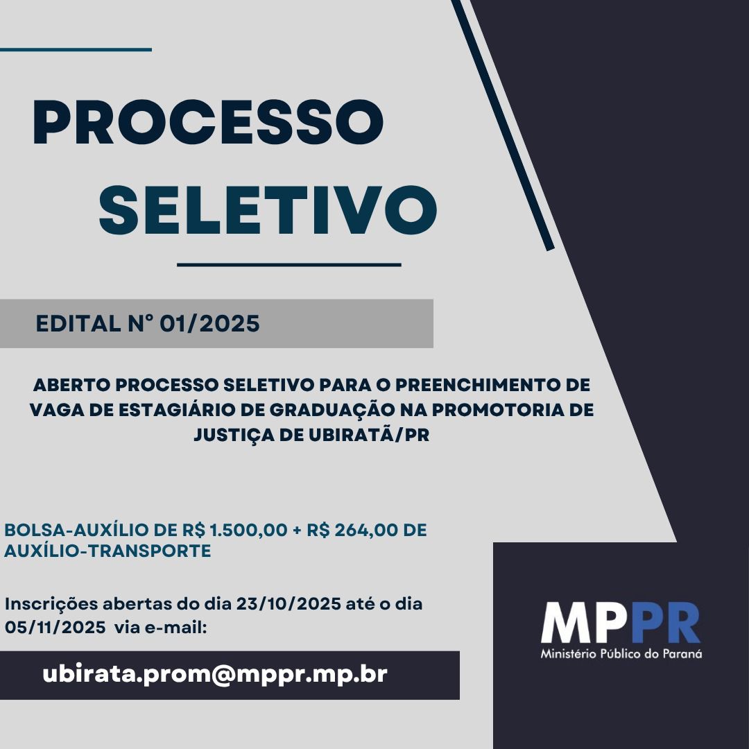 O Ministério Público do Paraná (MPPR) anunciou a abertura de um processo seletivo para estágio em Direito na Promotoria de Justiça de Ubiratã. Essa é uma excelente oportunidade para estudantes que buscam adquirir experiência prática em um ambiente jurídico respeitado.