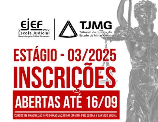 O Tribunal de Justiça de Minas Gerais (TJMG) anunciou a abertura de inscrições para um processo seletivo de estágio, com 308 vagas imediatas e formação de cadastro de reserva. A seleção é voltada para alunos de graduação e pós-graduação nas áreas de Direito, Psicologia e Serviço Social, abrangendo várias comarcas, incluindo cidades do sul de Minas Gerais como Campo Belo, Lavras, Muzambinho, Passos, Três Corações e Três Pontas.